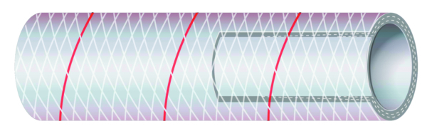 Heavy duty for hot or cold pressurized water systems (burst pressure 250#). Vent and drain lines, bilge pump discharge. Heavy walled FDA approved vinyl compound, non-toxic, tasteless, odorless. Polyester braid reinforcement. Temp range: 25° to 150°F162 SERIES- All Clear PVC Tubing-Polyester Reinforced (Red- Tracer)